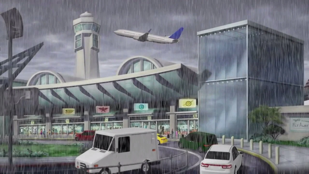 They then sit in their assigned seats and Nancy loves being on an airplane. She joins the rest of the Clancys in stretching out. A guest sits in between the family before the flight attendant announces that the flight is delayed due to bad weather. Nancy is frustrated, but brought activities to entertain herself. However, JoJo's backpack containing her snacks is missing. JoJo is frustrated, but Claire offers her her own snack pack. Doug also offers a thing to read, which JoJo fusses over. Nancy offers to draw the Eiffel Tower, and JoJo takes it but repeatedly flips the desk open and shut, annoying the Clancys. Claire mentions everyone is watching a movie, but JoJo doesn't want to watch what Nancy picks, and provides an example. Claire mentions that the Clancys can watch their own movies.